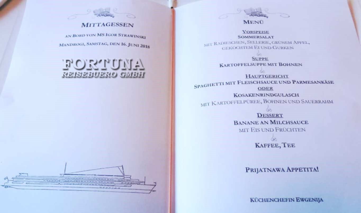 Fahrplan- und Programmänderungen: Änderungen des Reiseverlaufes und Ausflugsprogrammes bleiben seitens der Reederei vorbehalten. Bitte beachten Sie, dass es aufgrund von Niedrig-/Hochwasser, unvorhergesehenen Wartezeiten bei den Wolga-Schleusen oder auch aufgrund von Wetterbedingungen zu Verspätungen und daher zu Änderungen des Ausflugsprogrammes oder evt. auch der Ein-/Ausstiegstellen kommen kann. Ebenso behält sich die russische Reederei das Recht vor, die Gäste insbesondere infolge von Niedrig-/ Hochwasser oder Schiffsdefekt alternativ zu befördern bzw. unterzubringen (z. B. mit Bussen bzw. in Hotels) und allenfalls den Streckenverlauf zu ändern; unter Umständen ist auch der Umstieg auf ein anderes Flussschiff erforderlich.