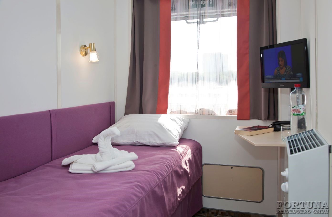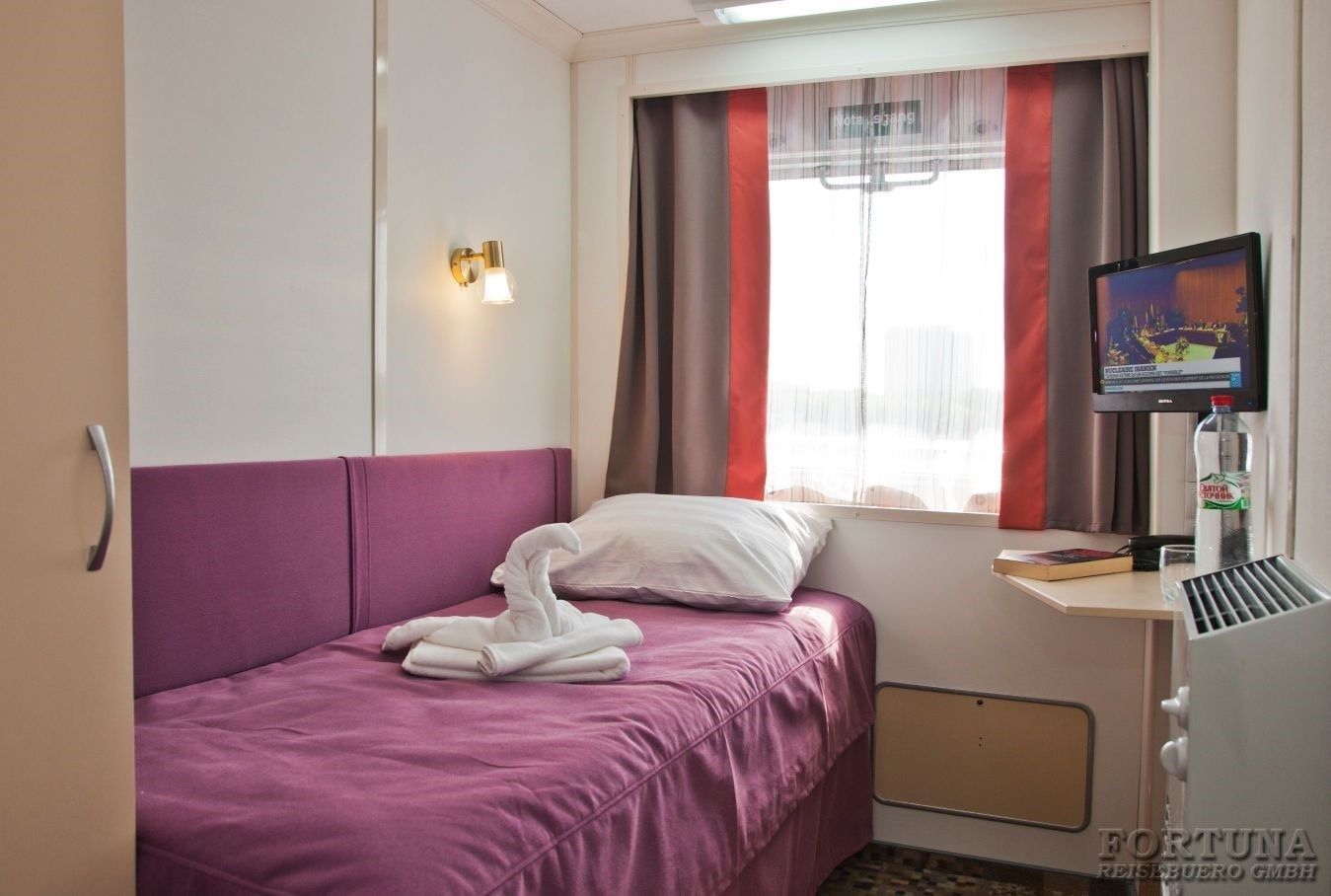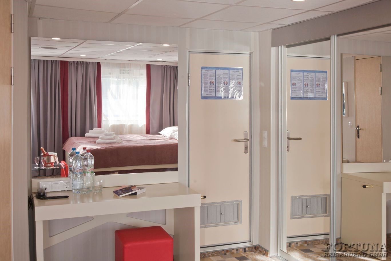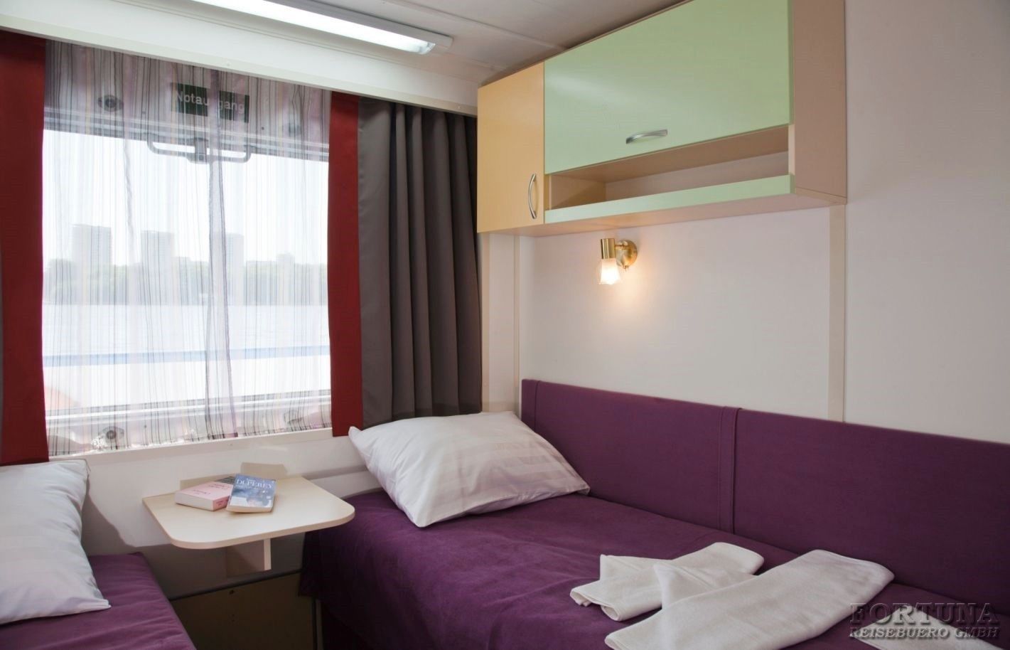Das Flussschiff MS „V. Kandinsky“ ist mit 4 Vierbettkabinen ausgerüstet, die sich auf dem Unterdeck befinden. Hier können bis 4 Personen unterzubringen, deshalb sind diese Kabinen ideal für einen Familienurlaub. Komfortable Kabinen sind mit 4 Einzelbetten, Stühle, Spiegel und Kleiderschrank ausgestattet. Alle Vierbettkabinen haben Bullaugen nicht zum Öffnen und sind mit Dusche/WC, SAT-TV mit Flachbildschirm/Radiokanal, Klimaanlage/Heizung und Safe eingerichtet. Stromspannung 220 V.