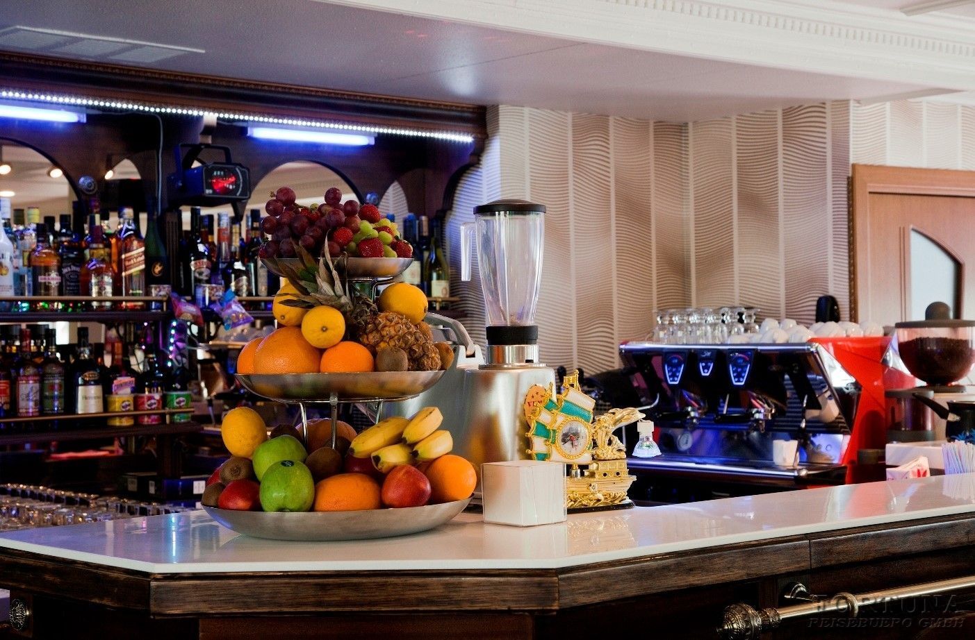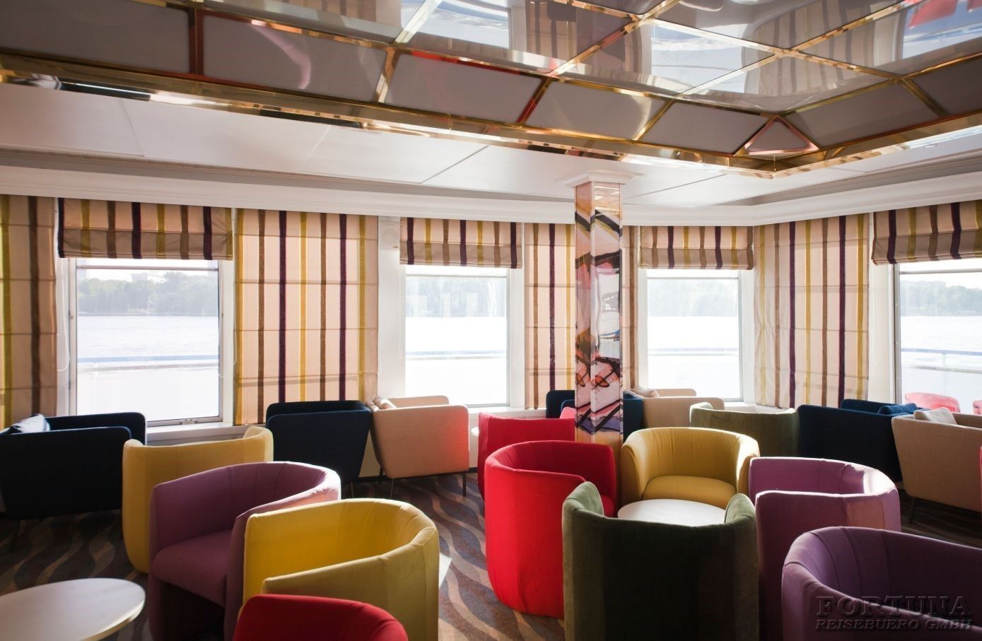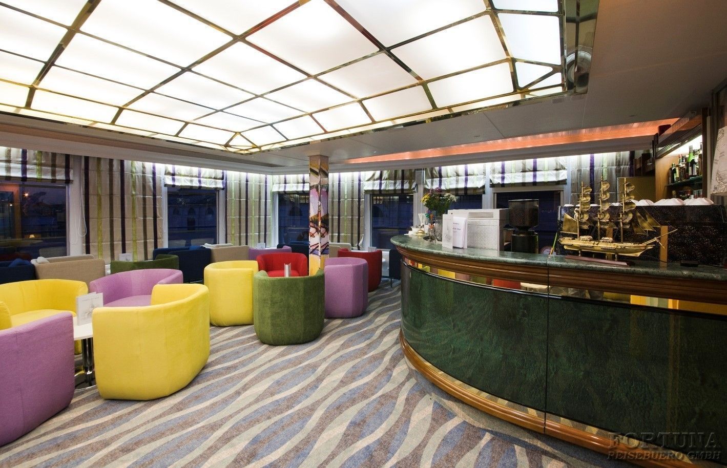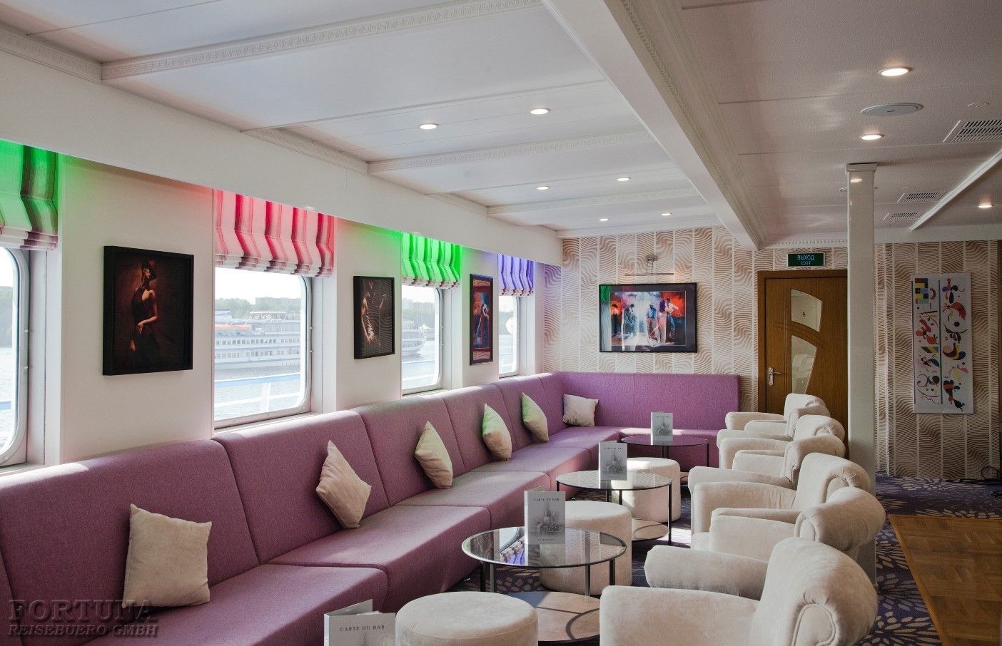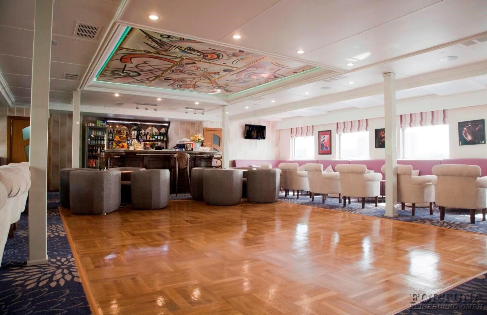 An Bord des Flusschiffes MS "Kandinsky" gibt es zwei Bars: Musiklounge und Aussichtssalon, wo Sie ruhig sitzen können, Musik hören und mit einem Getränk das Leben geniessen.