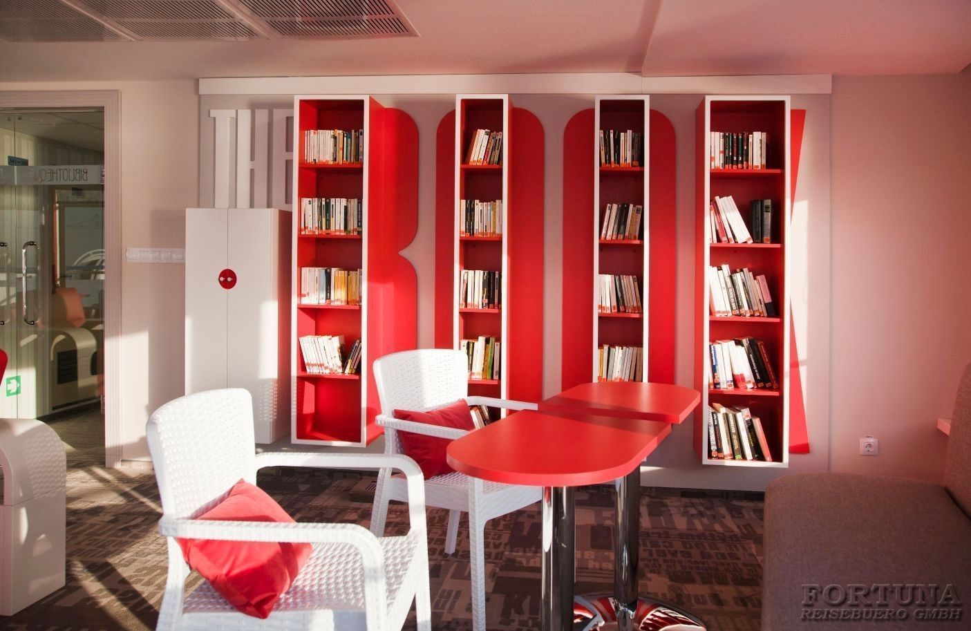 In der Bibliothek können Sie verschiedene Bücher lesen und sich erholen.