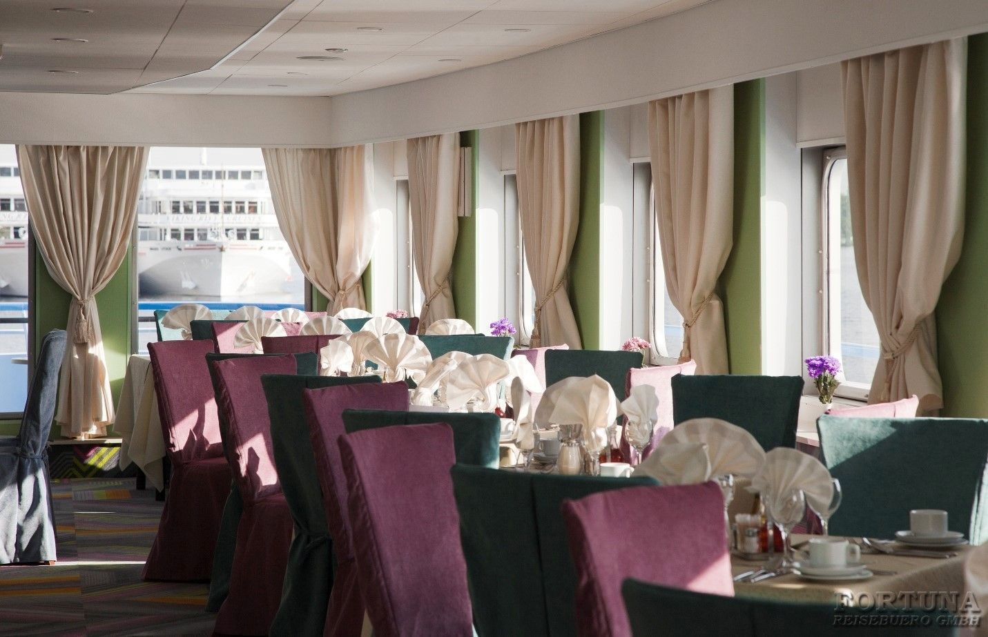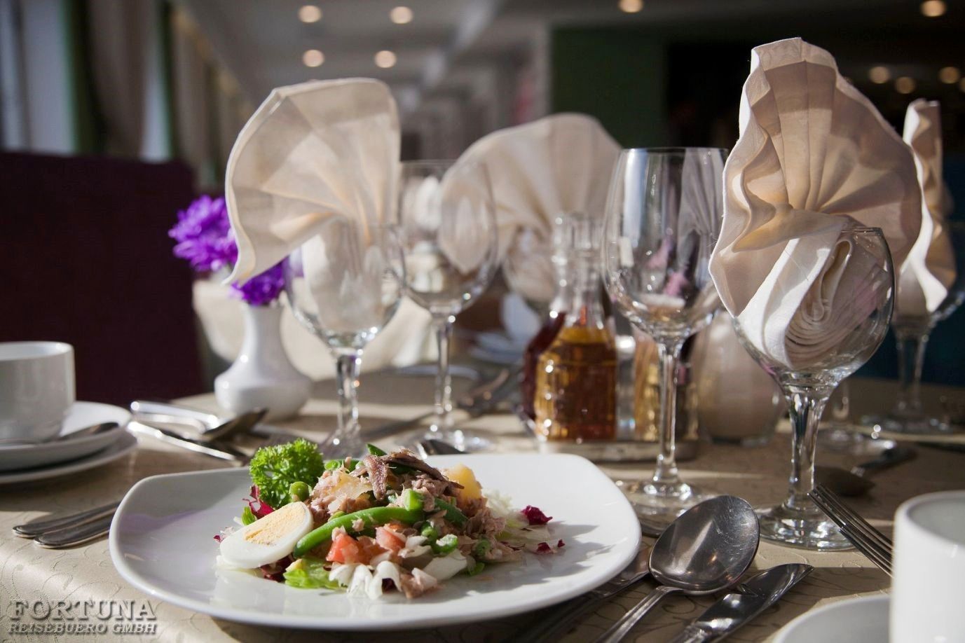An Bord des Schiffes MS "Kandinsky" befindet sich ein gemütliches Restaurant mit europäische und russische Küche.