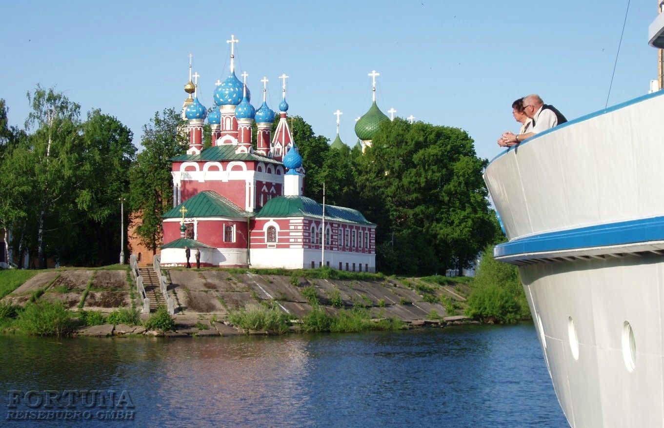 Diese Stadt ist mehr als 1000 Jahre alt und gehört zu den Städten des Goldenen Ringes. Uglitsch liegt am Oberlauf der Wolga und damit am Staudamm des Uglitscher Stausees. Mit einem Stadtführer unternehmen Sie einen Rundgang zum Zentrum der Stadt, das in einer Entfernung von ca. 10 Gehminuten vom Flusshafen entfernt ist. Sie besichtigen die prachtvolle Blutskirche des Heiligen Dimitri, die genau an der Stelle steht, an der der letzte Sohn des russischen Zaren Iwan des Schrecklichen tödlich verletzt wurde. Mehr über diese dramatischen Ereignisse erzählt Ihnen der Stadtführer. Am Ende des Rundganges haben Sie genug Freizeit, um das Städtchen auf eigene Faust zu erkunden, Fotos zu machen und etwas zu kaufen. Uglitsch ist für Mineralwasser, Schokolade und Uhren weit bekannt. Die Einwohner scherzen, dass ihre Stadt „die russische Schweiz“ genannt wird.