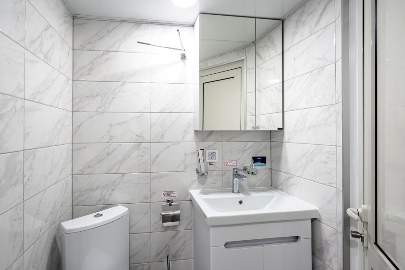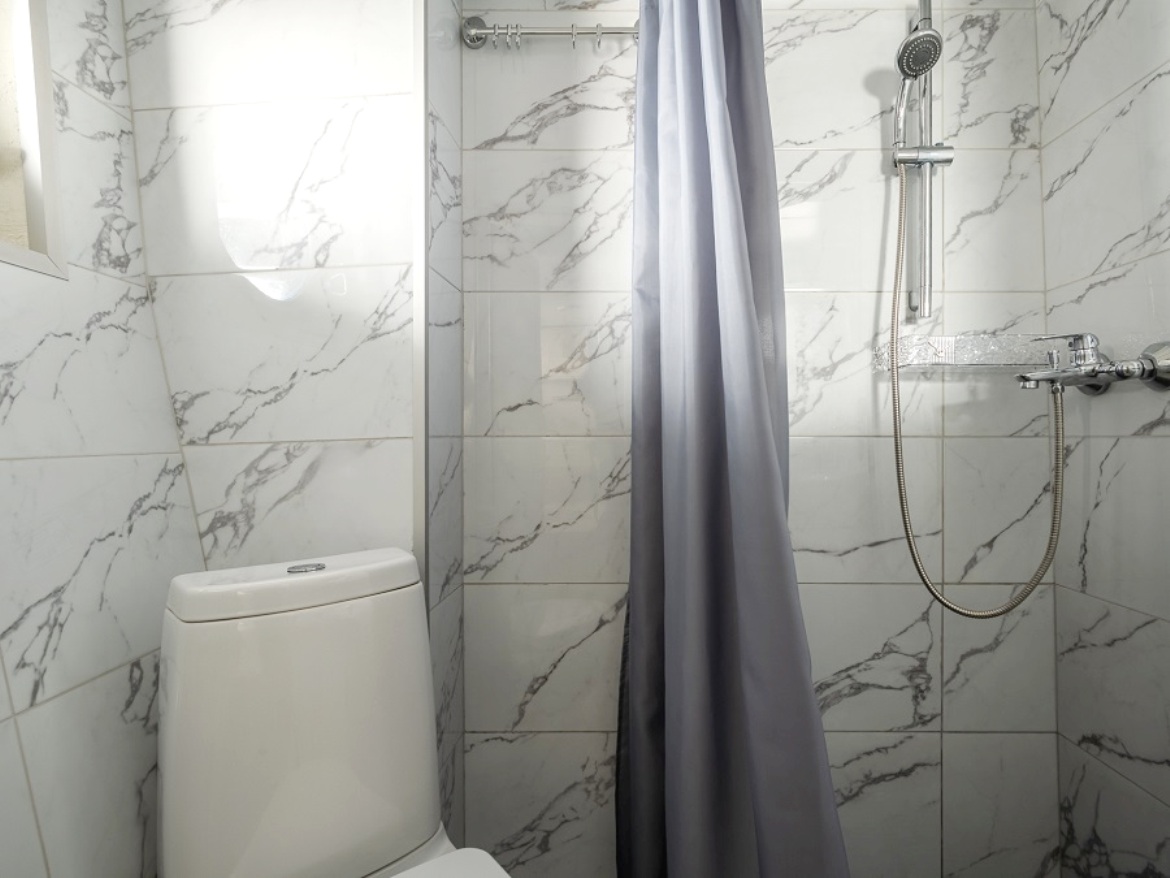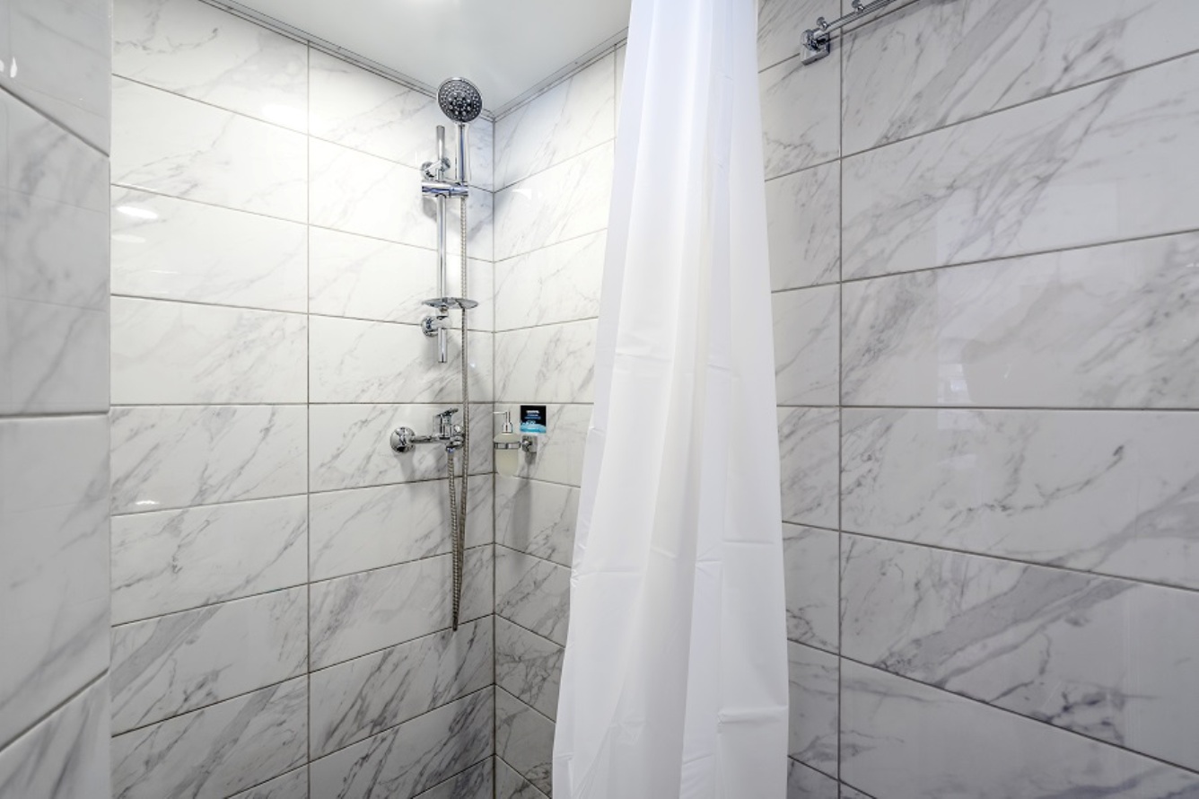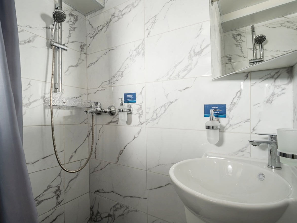 Einzelkabine mit allem Komfort (Dusche, WC, Waschbecken).