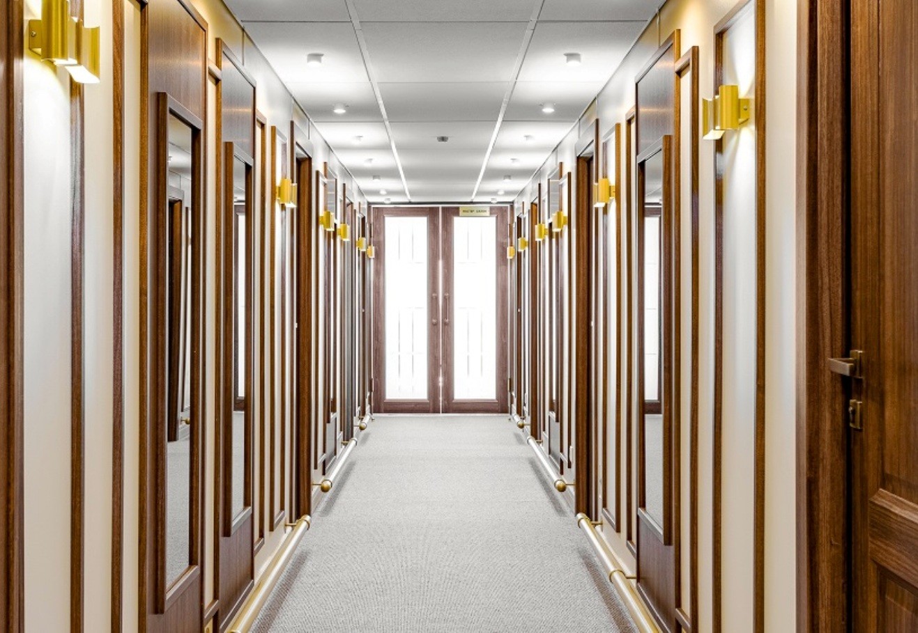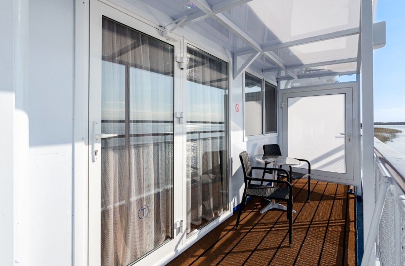 Die LUX-Kabinen liegen auf dem Bootsdeck im mittleren Teil des Schiffes. Sie haben Fenster und alle Bequemlichkeiten, sind nicht nur schick und elegant, sondern auch in der Ausstattung und Atmosphäre einzigartig und haben viel Licht dank vielen Fenstern. Alle Kabinen liegen außen und haben 2xPanorama-Fenster-Tür-Einheit zum Öffnen.