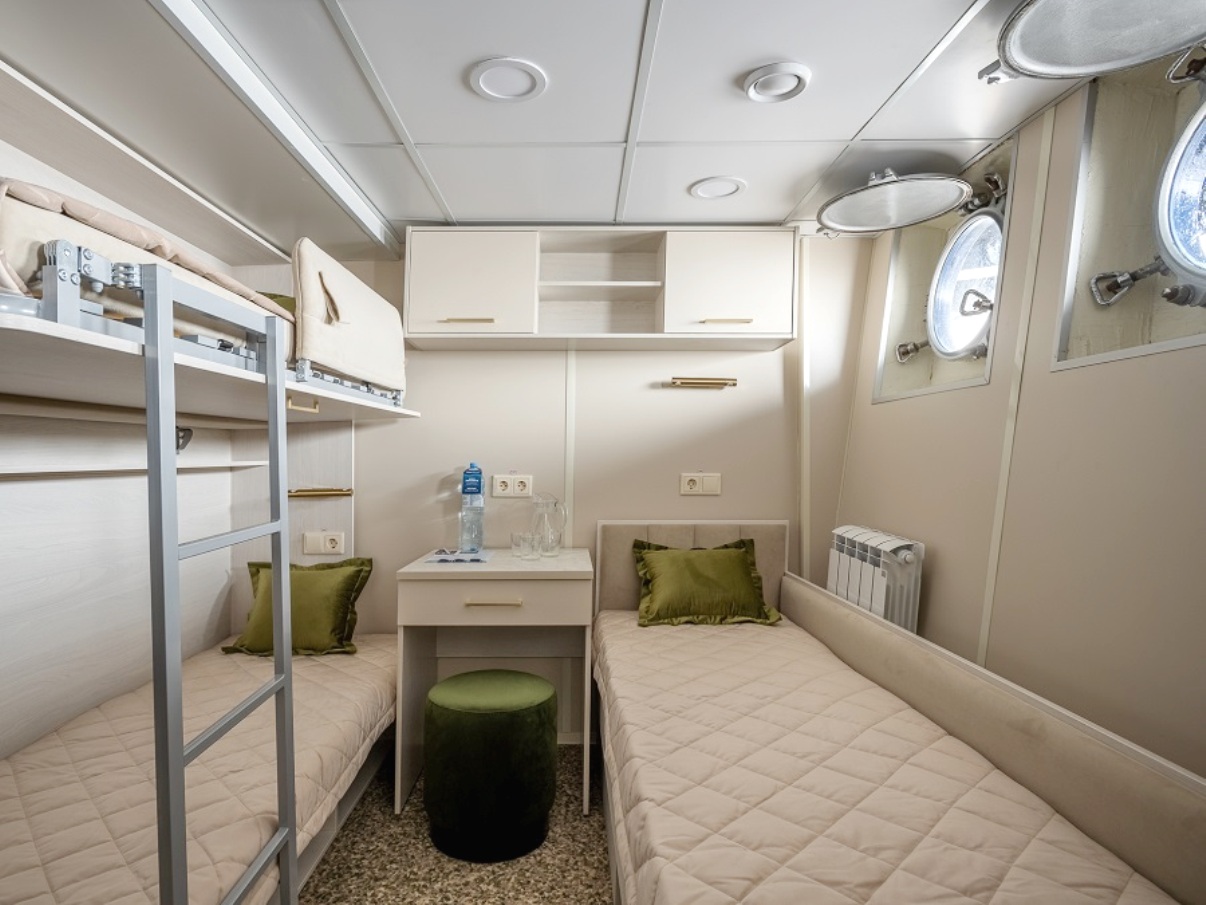 Die Kabinen bieten Platz für eine dritte Person in einem zusätzlichen Oben-Bett.