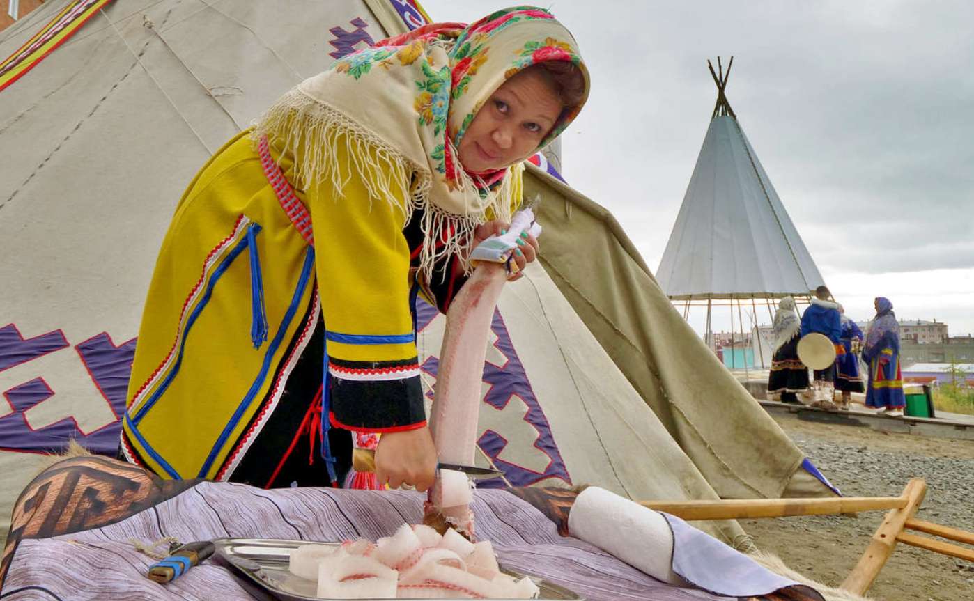 Hier werden Sie mit der Gastfreundschaft der indigenen Völker des Nordens und mit einer Meisterklasse des Walrosses & Mamut Knochenschnitzens bekannt gemacht. Während der Besichtigung der ethnischen Siedlung „Tijacha“ lernen Sie ein indigenen Völker des Nordens kennen - die Nenzen. Mythen und Märchen zu Maultrommelklängen, traditionelles Handwerk lehren: "Maut" werfen - das Lasso der Nenzen, Fell sticken "sokui" - traditionelle Kleidung, die die Nenzen vor Kälte, Wind, Feuchtigkeit und Mücken schützt. Sie werden eine Herde von fast tausend Sibirien-Hirschen sehen und interessante Fotos machen können. Besuch bei „Chum“ - Haus des Rentierhirten & Verkostung lokaler Köstlichkeiten.