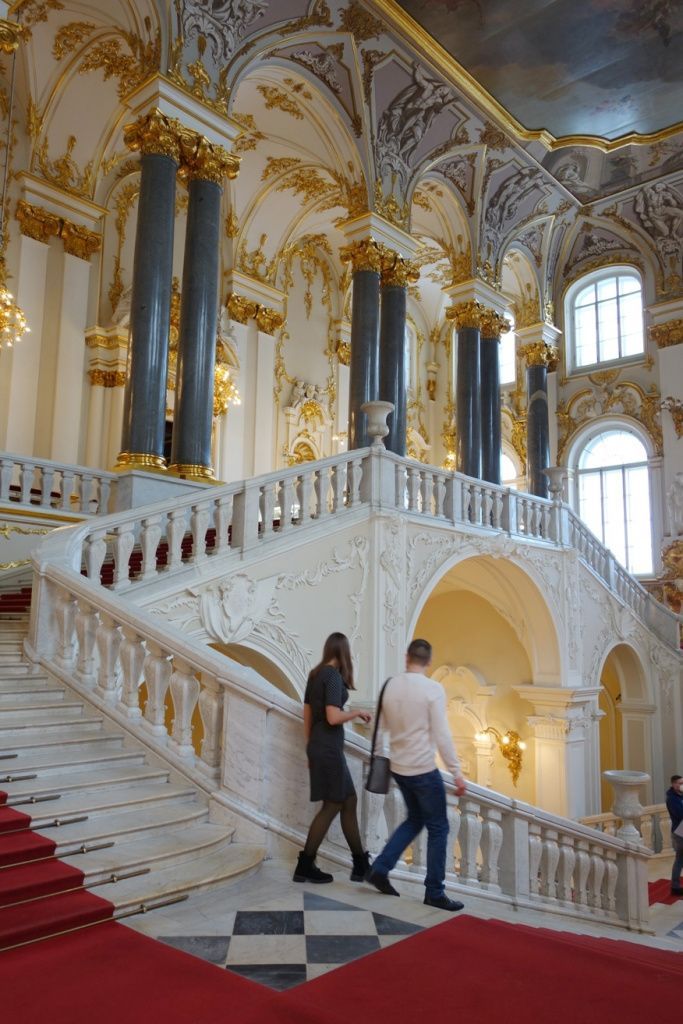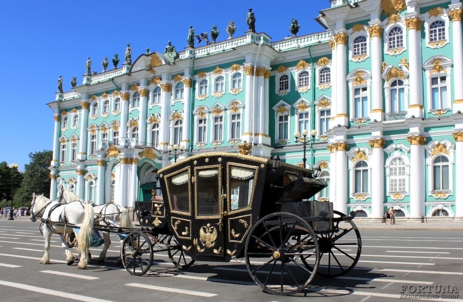 Gleich werden ´´Seine Majestät`` aus seinem bescheidenen Haus treten, der Kutscher wird den Schlag öffnen und ab geht es huldvoll winkend zur täglichen Spazierfahrt. Am Schloßplatz steht der Winterpalast, die ehemalige Zarenresidenz. Der ab 1754 in zehnjähriger Bauzeit errichtete Palast trägt die Handschrift des aus Italien stammenden Architekten Graf Bartolomeo Rastrelli (1700-1771), der seit 1736 russischer Hofbaumeister und mindestens so geschickt war wie der spätere Jongleur fast gleichen Namens. Rastrelli schuf die unnachahmliche Stilform des russischen Barocks, die Lust an Dekor und Farbe auszeichnet. Heute sind in den Räumen des Winterpalastes die Sammlungen der Eremitage ausgestellt. Deren hervorragende Kunst-Kollektion ist auch in vier weiteren angrenzenden Gebäuden zu finden: der Kleinen Eremitage, der Alten Eremitage, der Neuen Eremitage und dem Eremitagetheater. Das Museum besteht seit 1852; es ist mit über drei Mio. Exponaten eines der größten Kunstmuseen Europas mit über 3 Mio. Kunstgegenständen. In 400 Sälen ist die Kunst der Antike, des Orients und Westeuropas zu sehen… Darunter sind Gemälde von Leonardo da Vinci, Rafael, Rembrandt, Picasso und anderen herausragenden Meistern ihrer Zeit....