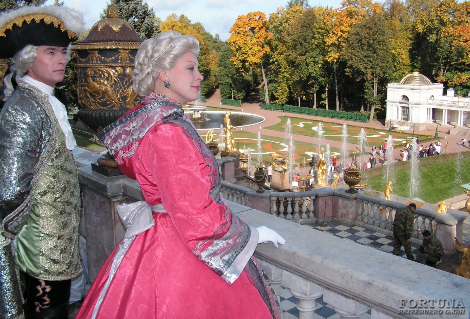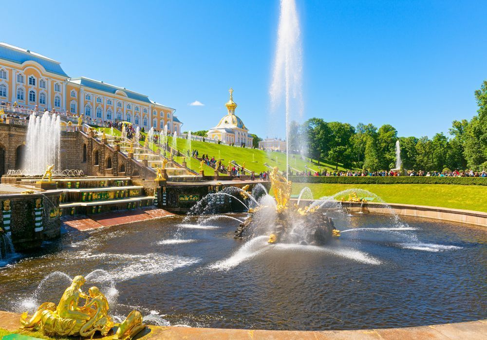 Spaziergänge im Barockgarten von Peterhof mit seinen einzigartigen 150 Springbrunnen, Kaskaden, und Scherz-Fontänen – auch bekannt als „das russische Versailles“. Die angelegten Gärten mit ihren glitzernden Springbrunnen wurden von Peter dem Großen selbst entworfen. Mit den grandiosen Wasserspielen, dem zaristischen Prunk und der Pracht gilt Peterhof als die schönste Sommerresidenz der russischen Zaren.