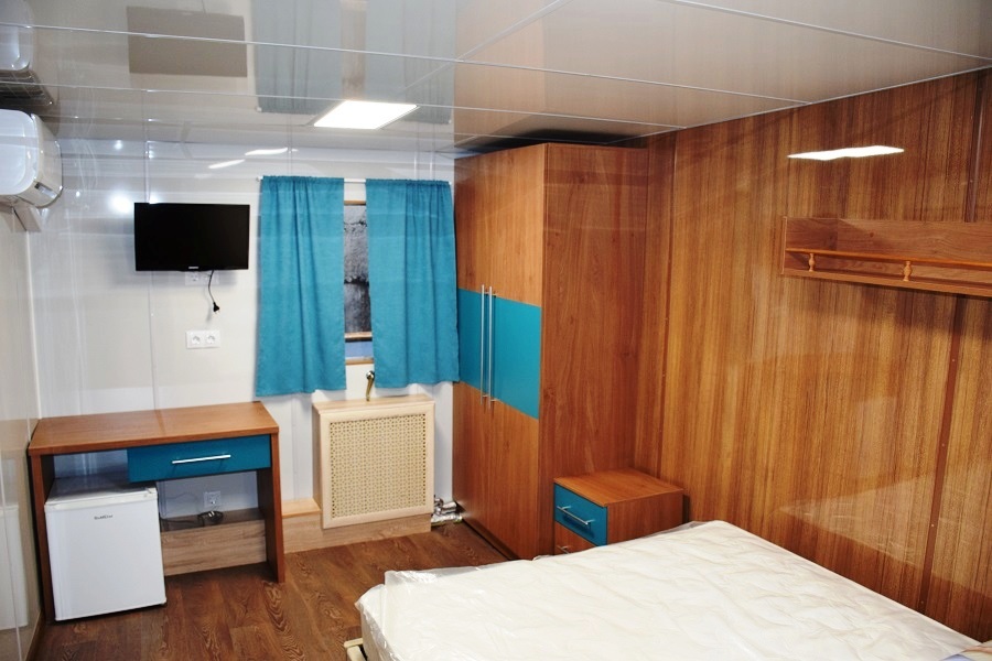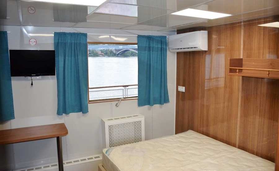 Die Kabine eignet sich auch für die Unterbringung von Fahrgästen mit Behinderungen. In der Kabine: Bullauge; 1 Doppelbett DBL; Tisch; Schrank; TV; Safe; Waschbecke; breite Tür für Behinderte Passagiere. Die öffentlichen Bereiche (Dusche und WC), die für Behinderte Passagiere geeignet sind, befinden sich auf dem Hauptdeck. Bitte beachten Sie, dass es keinen Aufzug auf dem Schiff gibt, um auf das Obere Deck zu gelangen.