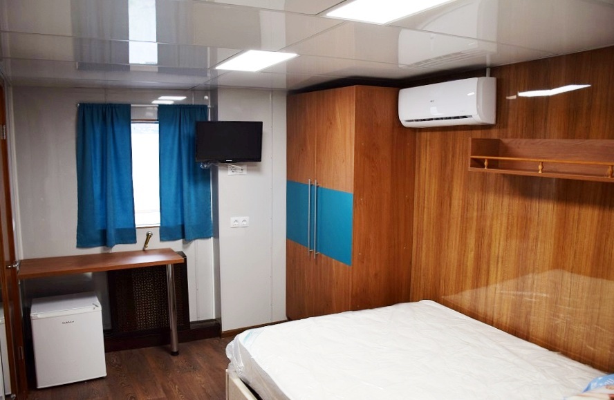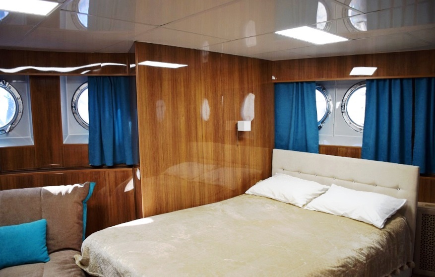 Kabinen befinden sich im Nasenteil des Hauptdeckes. In der Kabine: 4-6 Bullaugen; Klimaanlage; Doppelbett und extra -Stuhlbett; Tisch; großer Schrank; TV; Kühlschrank; Steckdose; Safe; Badezimmer mit Dusche, WC und Waschbecke. Badezimmer mit Fenster. Bitte beachten Sie, dass die Verwendung eines Bettstuhls, sowie ein zusätzlicher Schlafplatz, den freien Raum in der Kabine erheblich einschränkt und gewisse Unannehmlichkeiten verursachen kann!