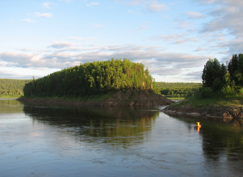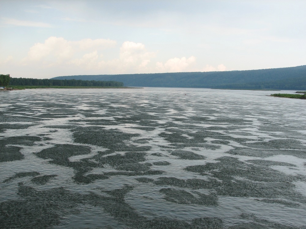 Passage: die Mündung des Flusses Sym (an den Ufern Altgläubigen-Siedlungen), Worogow-System (hier verbreitert sich der Jenissei auf 15 km, während die Fahrrinne sehr eng ist), Osinovski-Schwelle (die Geschwindigkeit des Flusses über 13 km/h, sehr kurvenreich, einseitige Bewegung).