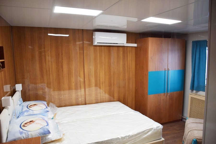 In der Kabine: Panoramafenster; Klimaanlage; Doppelbett DBL (Kabinen 201-204) oder 2 Twin Betten in der Nähe (Kabinen 205-206); Tisch; großer Schrank; TV; Kühlschrank; Steckdose; Safe; Badezimmer mit Dusche, WC und Waschbecke.