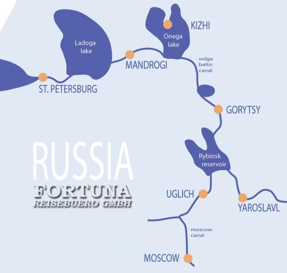 Änderungen des Reiseverlaufes und Ausflugsprogrammes bleiben seitens der Reederei vorbehalten. Bitte beachten Sie, dass es aufgrund von Niedrig-/Hochwasser, unvorhergesehenen Wartezeiten bei den Wolga-Schleusen oder auch aufgrund von Wetterbedingungen zu Verspätungen und daher zu Änderungen des Ausflugsprogrammes oder evt. auch der Ein-/Ausstiegstellen kommen kann. Ebenso behält sich die russische Reederei das Recht vor, die Gäste insbesondere infolge von Niedrig-/ Hochwasser oder Schiffsdefekt alternativ zu befördern bzw. unterzubringen (z. B. mit Bussen bzw. in Hotels) und allenfalls den Streckenverlauf zu ändern; unter Umständen ist auch der Umstieg auf ein anderes Flussschiff erforderlich.